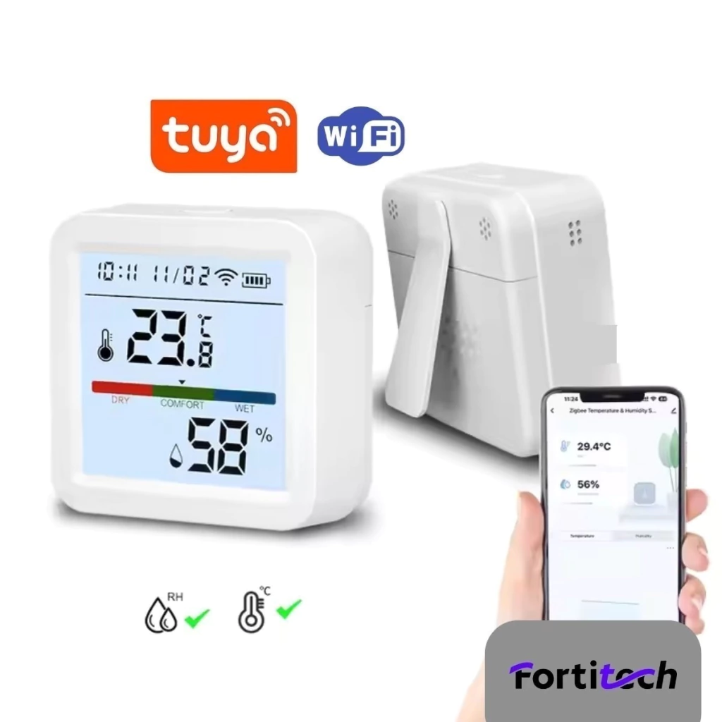 Monitoreá en tiempo real la temperatura y la humedad de tus espacios con el sensor WiFi Fortitech FT-WL-TH05. Visualizá los valores directamente desde su pantalla LED o recibí alertas y datos históricos desde la app Tuya Smart o Smart Life. Compatible con Alexa y Google Home, este dispositivo es ideal para automatizar ambientes en hogares, oficinas o comercios.